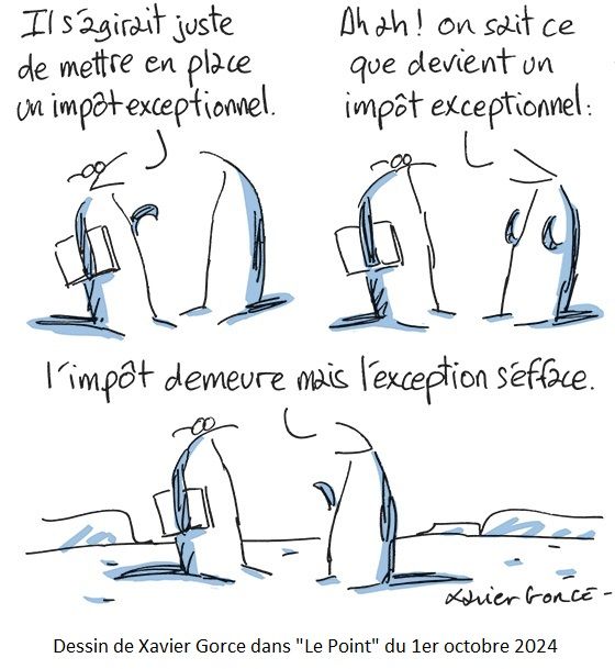 C'est ainsi qu'en s'exprimant aux présidents de conseils départementaux, le Premier Ministre s'est exprimé finalement à toute la classe politique et à l'ensemble des Français. Petit à petit, Michel Barnier crée sa légende. Il se moque de savoir s'il durera, il sait qu'il fait du hors piste et que le vide de la falaise n'est pas loin, mais il est déterminé et se sent investi enfin d'une mission à la mesure de ses ambitions. Même s'il est renversé demain par une conjonction certes improbable mais possible, on peut dire déjà qu'il aura marqué son temps politique. Sur sa longévité, il a dit à Angers, au détour d'une réflexion : « Nous allons, avec cet objectif-là, pendant le temps que nous aurons, deux ans et demi, j'espère... Ça dépend de l'Assemblée Nationale, vous l'avez bien compris. C'est une conjonction qui peut paraître improbable, mais qui peut toujours se produire. » (à "Ouest-France", il disait de même : « Nous savons que la durée de vie du gouvernement dépend d'une conjonction entre l'extrême gauche et le Rassemblement national. »).