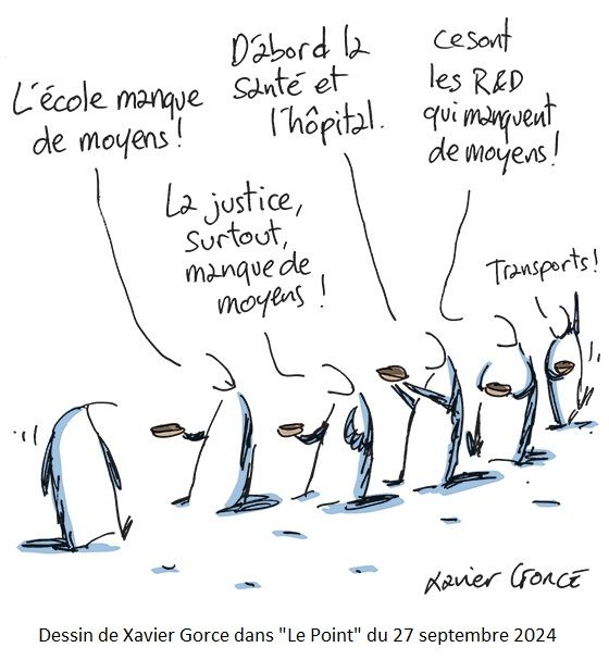 Le plus fort de café sont ces gens de gauche qui fustigent le caractère droitier du gouvernement. Évidemment ! La gauche a refusé de gouverner. Ce n'est pas faute d'avoir essayé. Michel Barnier a proposé à Stéphane Le Foll, François Rebsamen, Karim Bouamrane, Philippe Brun, Jérôme Guedj, Carole Delga, Bernard Cazeneuve, etc. d'entrer au gouvernement et tous ont refusé, tous sauf Didier Migaud qui ne représente que lui-même, d'ailleurs (on peut prédire pour lui une démission spectaculaire dans quelques mois à la Nicolas Hulot). Forcément, dès lors que la gauche et en particulier le parti socialiste se défile pour prendre ses responsabilités et penser à l'intérêt national, le barycentre, mécaniquement, se déplace vers la droite. Rappelons et insistons, martelons : Emmanuel Macron était prêt à nommer Bernard Cazeneuve à Matignon, le seul accepté de gauche par le bloc central, susceptible de recueillir jusqu'à une majorité absolue, sans "surveillance" des extrêmes (tant du RN que de FI). C'est le PS qui l'a lourdé, comme un malpropre, et aujourd'hui, ses anciens soutiens au sein du PS (33 au bureau national, contre 38), font machine arrière et condamne la droitisation du gouvernement. Ils auraient pu sortir de la nasse de mélenchonisme d'Olivier Faure. Ils ont préféré l'hypocrisie des postures aux actes sincères. Au lieu d'avoir un programme de gauche édulcorée, ils ont un programme de droite droite... de leur fait ! De le volonté de ne pas vouloir l'intérêt des Français mais le leur.