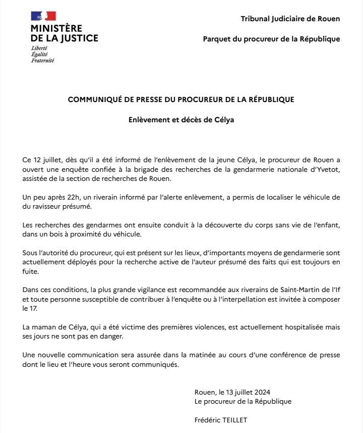 L'autopsie réalisée ce lundi 5 mai 2025 n'a donné aucun résultat conclusif sur la cause de la mort en raison de l'état du corps. Une crise cardiaque, par exemple, ne laisserait plus beaucoup de traces visibles après trois semaines dans des conditions extérieures très humides. D'autres analyses et examens sont en cours de réalisation pour poursuivre les investigations.